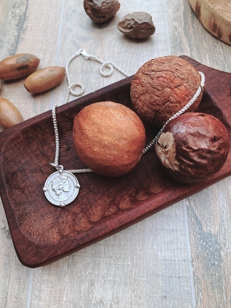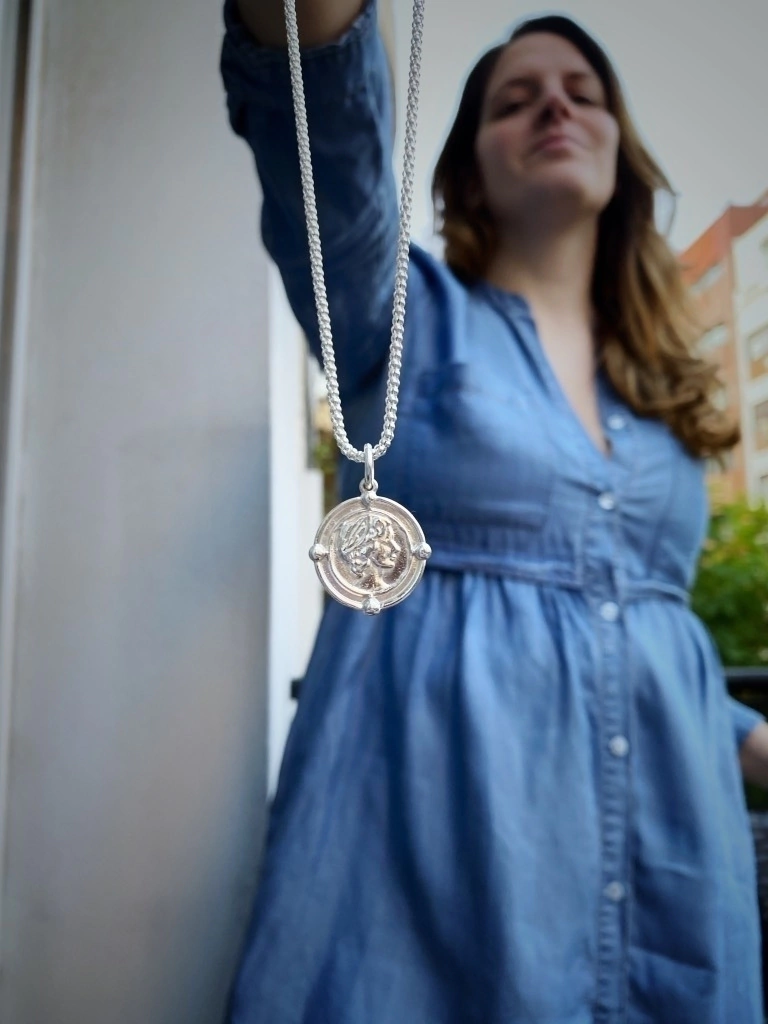 Collar de plata 925 maciza de deidad Greco-Romana Afrodita Venus en medallón macizo de plata 925 Y Cadena de 50 cm de largo gruesa de plata 925 italiana.