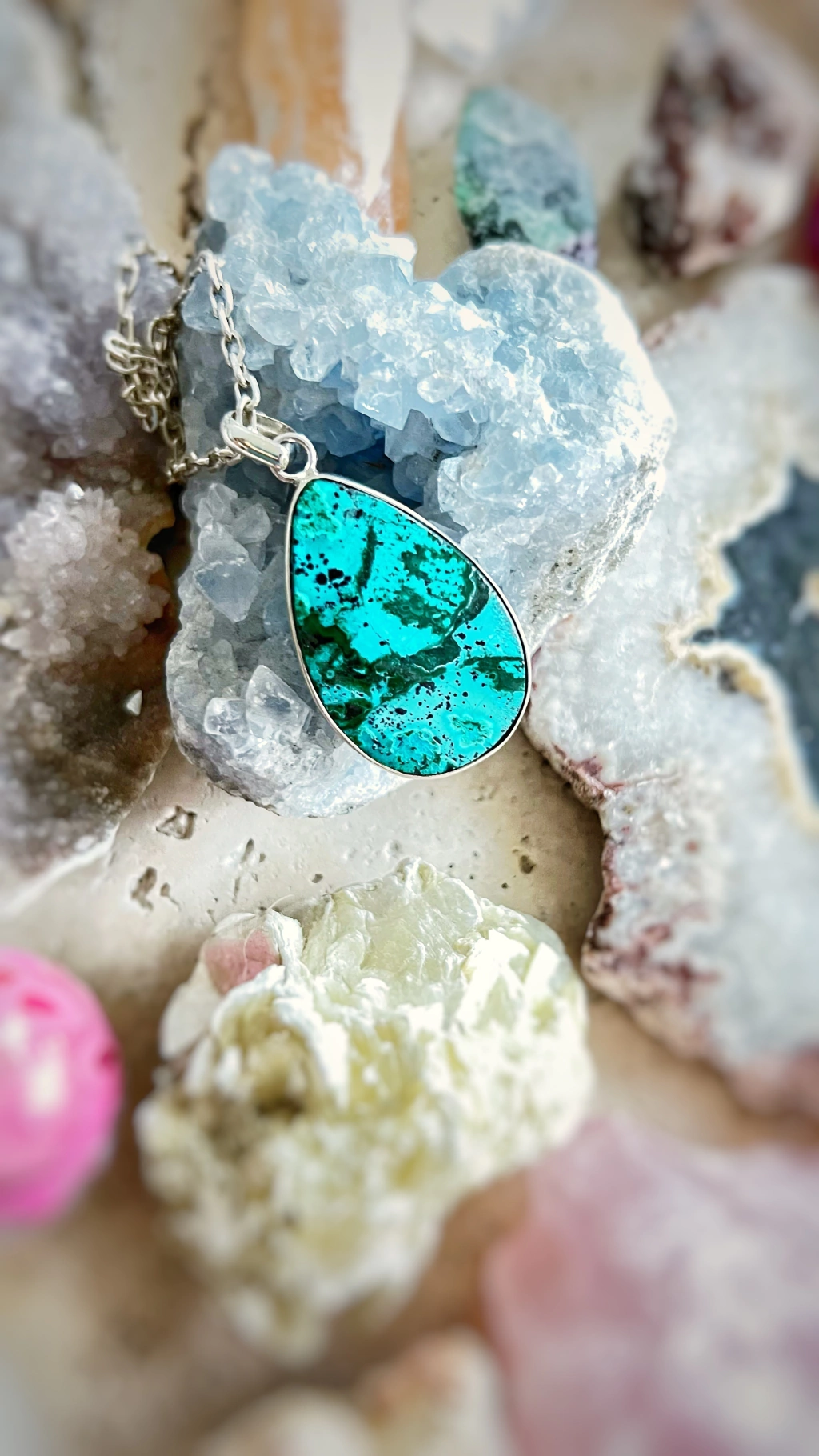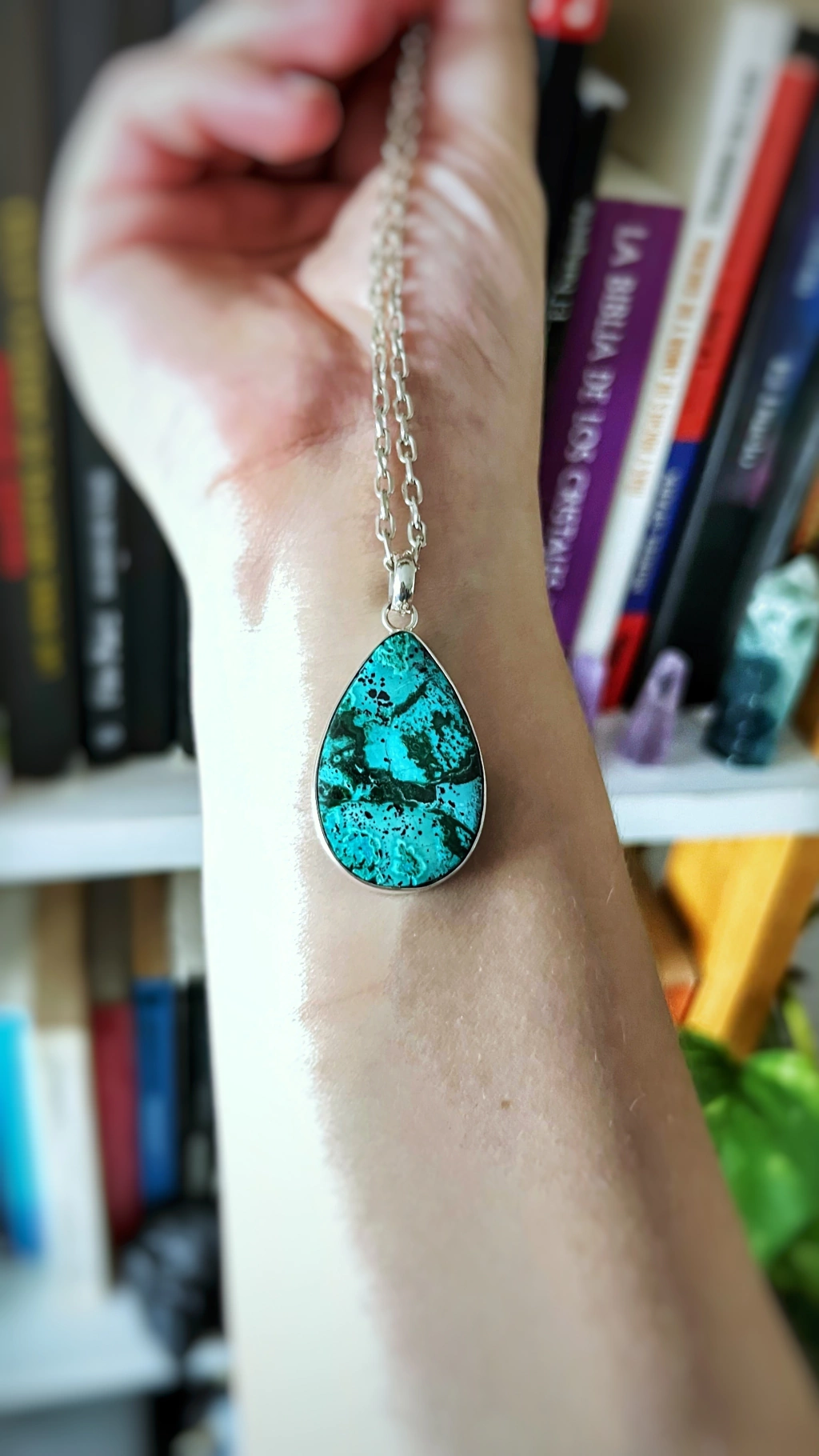 Collar de plata 925 con cadena forcet gruesa de 65 cm y medallon en forma de gota XXL de piedra semipreciosa de turquesa original de Afganistan.