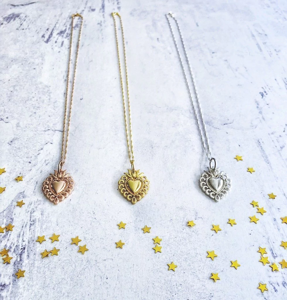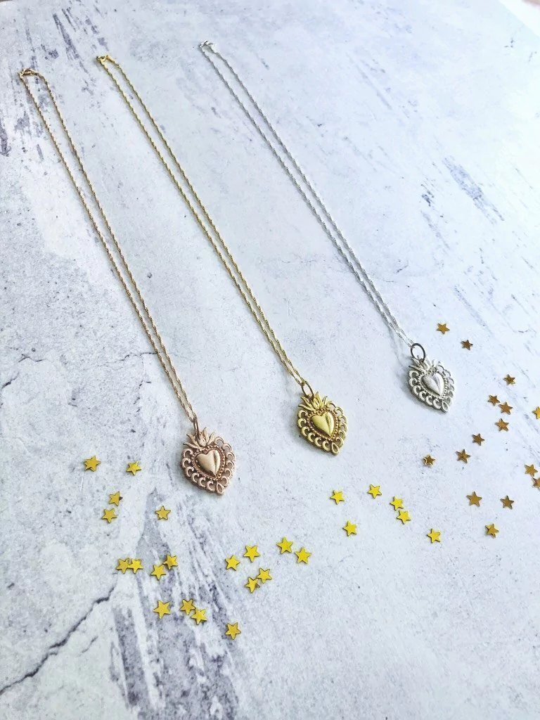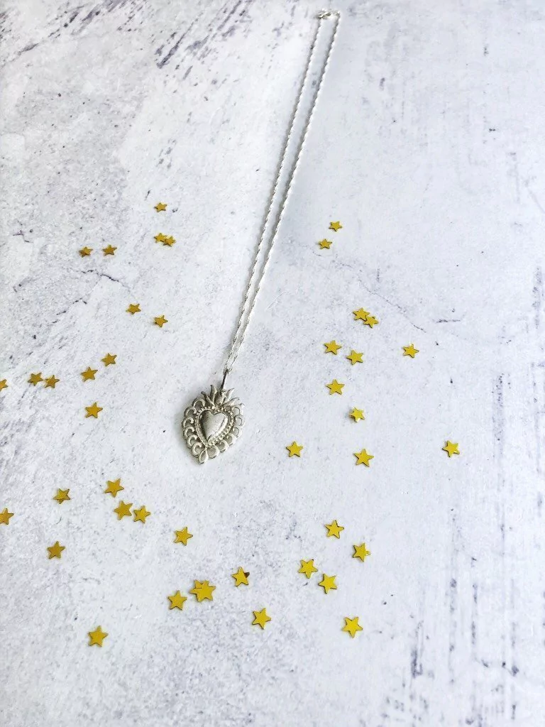 Corazones detentes o milagritos mexicanos de plata 925 incluye la cadena de 50 cm del mismo material.